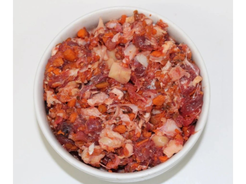 40% Hovězí ořez, 20% mletá hovězí chrupavka, 20% hovězí vemeno, 20% mrkev.